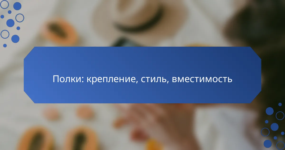 Полки являются важным элементом интерьера, и их выбор зависит от крепления, стиля и вместимости. Правильное крепление гарантирует надежность и долговечность, а также влияет на общий вид помещения. Стиль полок может подчеркнуть характер интерьера, создавая уютную или современную атмосферу. Вместимость полок варьируется в зависимости от их размеров и материалов, что позволяет выбрать оптимальный вариант для любых нужд.